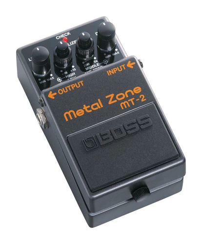 El pedal compacto MT-2 [Metal Zone ®] de BOSS Presenta circuitería de ganancia dual para lograr sonidos apretados con distorsión de amplificación de bulbos y gabinetes 4x12, con extensión en frecuencias medias y graves, así como sostenimiento prolongado, este efecto se ha vuelto el mas buscado y solicitado tanto por los músicos como por el publico en general que busca este sonido típico de distorsión de boutique, que antes solo era alcanzable por unos cuantos privilegiados. EL ecualizador integrado de tres bandas con medios semi-parametricos lleva tu sonido al Extremo.